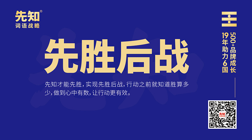 【先勝后戰(zhàn)】先知出自《孫子兵法》動(dòng)而勝人成功處于眾者,先知也。提前看到未來(lái),更重要的是先知,率先獲得認(rèn)知,提前規(guī)劃布局,借助大眾已有認(rèn)知,讓品牌獲得認(rèn)知共識(shí)。